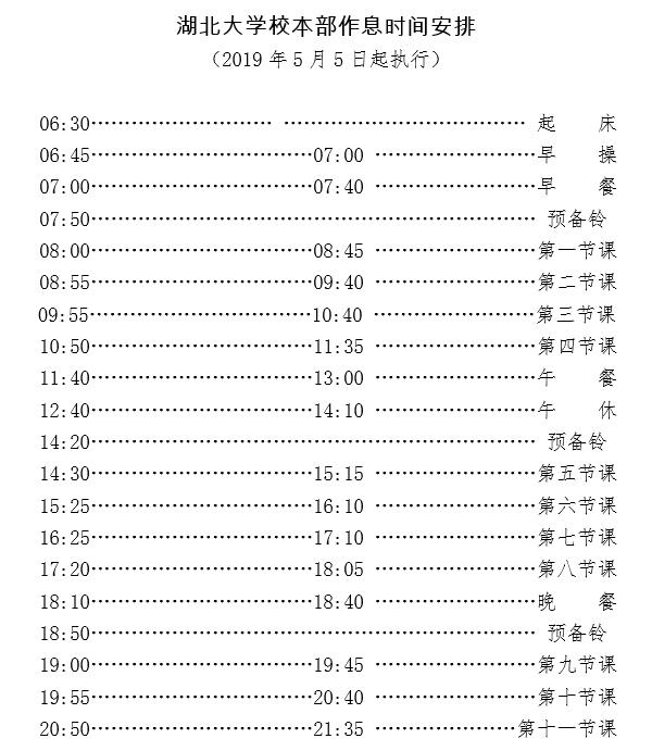 附件:湖北大学校本部作息时间安排(2019年5月5日起执行)