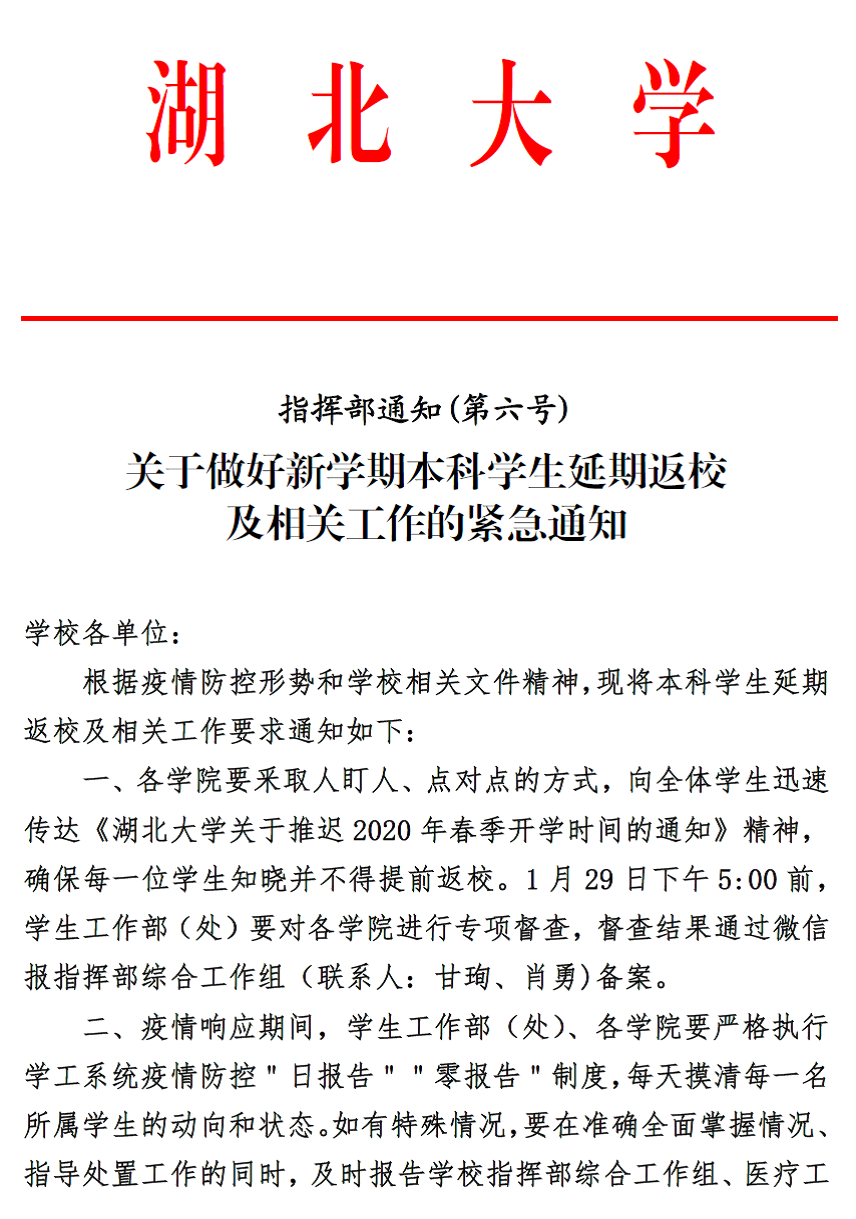 来源:湖北大学疫情防控指挥部 作者: 编辑:王义芳 时间:2020-01-28 字号: 【大】 【中】 【小】