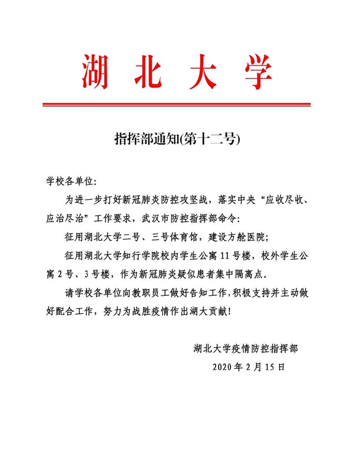 来源:湖北大学疫情防控指挥部 作者: 编辑:鲜文涛 时间:2020-02-16 字号: 【大】 【中】 【小】