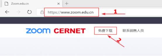 第一步:浏览器访问ZOOM教育网站点zoom.edu.cn,按图所示点击。