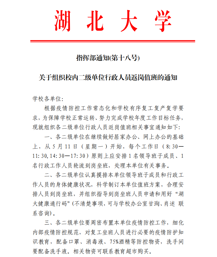 来源:湖北大学疫情防控指挥部 作者: 编辑:鲜文涛 时间:2020-05-08 字号: 【大】 【中】 【小】