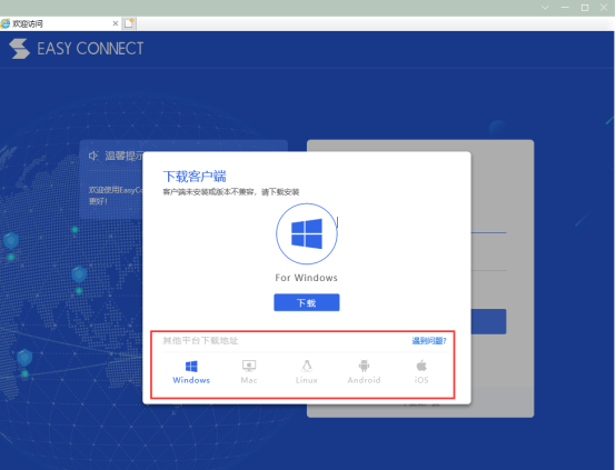 3、打开网页后,请按照页面提示下载安装相应版本的VPN客户端。