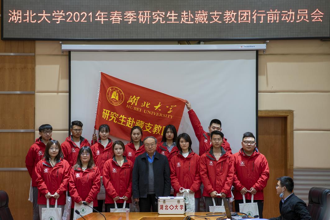 “我志愿加入湖北大学研究生赴藏支教团,弘扬爱国主义精神,坚定社会主义方向……。”3月26日,湖北大学会议中心,12名研究生右手握拳,郑重宣誓。 这是一场临行前的集体宣誓,2个小时后,他们将坐上飞往西藏的飞机,去那里开始崭新的生活;这是一次全新的探索,湖北大学首次选拔在读研究生赴藏支教,湖大党委书记谢红星临行寄语,“湖大少年多壮志,援藏支教绽芳华”;这是一次充满希望的远行,3200余公里以外的西藏山南市东辉中学,将首次迎来研究生支教者,东辉中学校长王与雄直抒胸臆,“非常期待”。