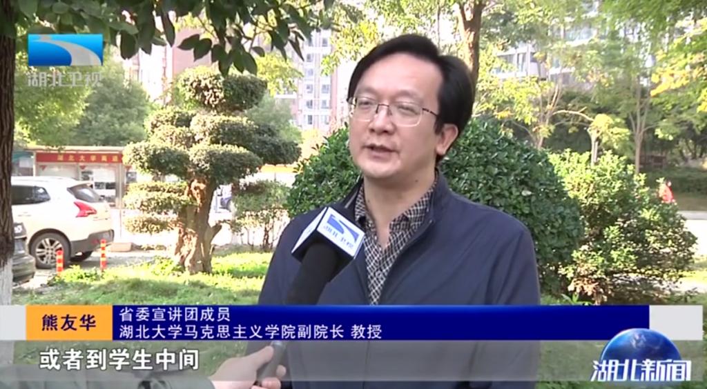 省委宣讲团成员 湖北大学马克思主义学院副院长 教授 熊友华:“下到企业、进到社区、走到群众中间,或者到学生中间,回应期待、对接需求,还要抓住问题、讲好普通话、也讲好湖北话。”