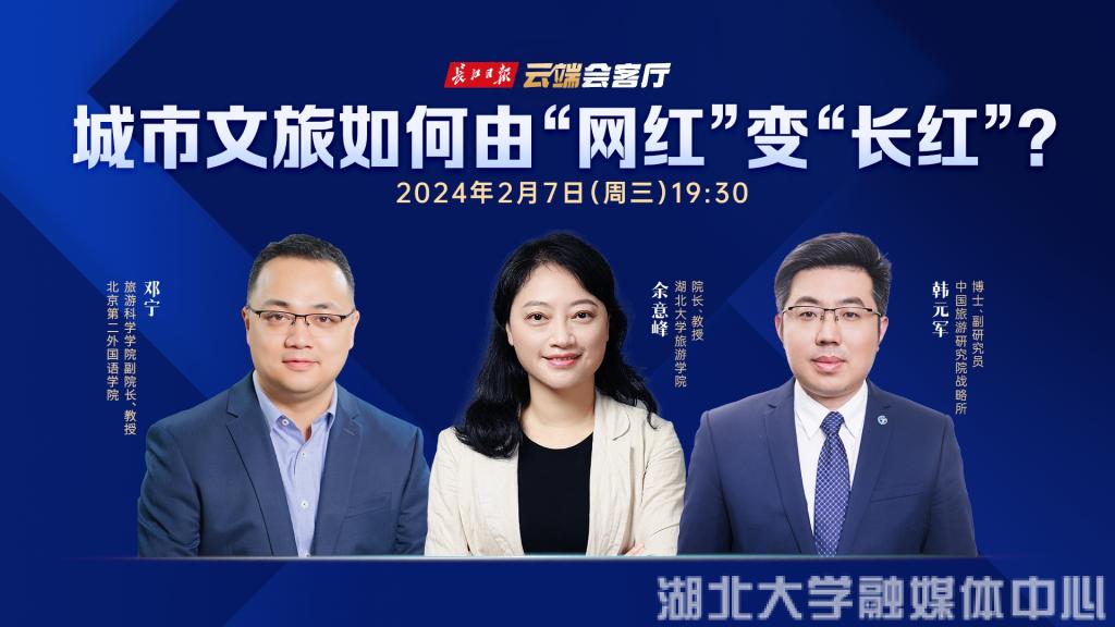 近日,长江日报云端会客厅邀请北京第二外国语学院旅游科学学院副院长、教授邓宁,湖北大学旅游学院院长、教授余意峰,中国旅游研究院战略所博士、副研究员韩元军三位嘉宾做客,围绕相关问题展开讨论。