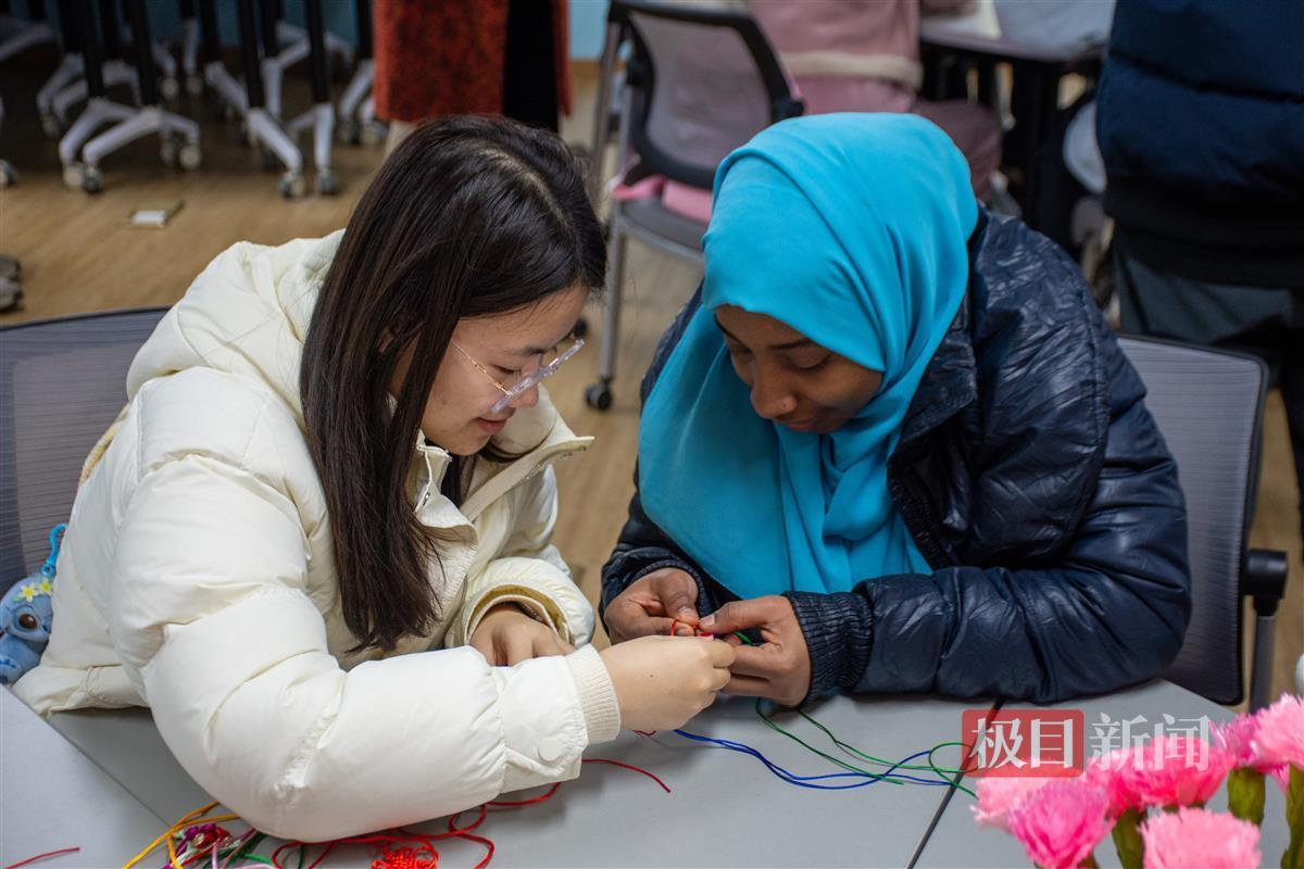 “从下面绕过来,转一个圈,把绿线穿到黄线里……”3月7日中午,一场热闹非凡的传统编织教学活动在湖北大学举行。活动由该校离退休工作处与曼城联合学院共同组织,该校退休女教师代表、中国师生代表和来自巴基斯坦、坦桑尼亚、巴西等国家的留学生聚集一堂,在非遗体验中共同迎接三八国际妇女节的到来。