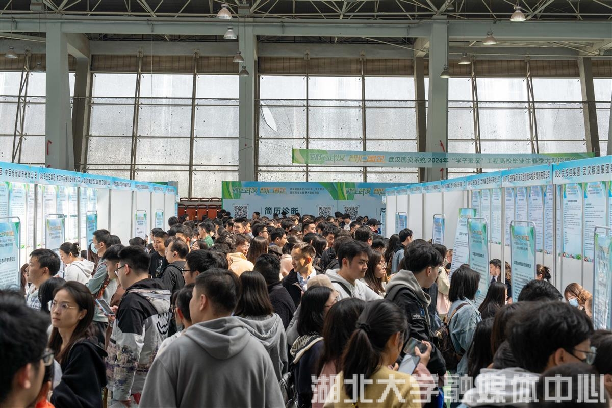 3月28日,武汉市国资委联合武汉人才集团、湖北大学举办“就在武汉、智汇国企”武汉市国资系统2024年“学子聚汉”工程高校毕业生春季大型招聘会,该招聘会旨在强化人才强市战略,落实就业优先政策,使高校毕业生更加充分、高质量就业。本次招聘会由武汉国资系统13家集团单位共计70家企业共同开展招聘活动,涵盖金融、商贸、智慧城市等多个领域。