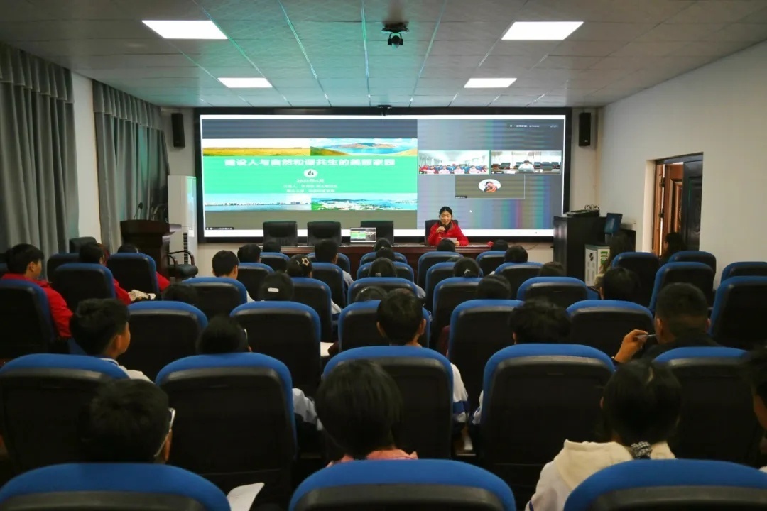 李昂松博士运用丰富的多媒体内容与西藏山南的青少年们积极互动,为学员们讲解“绿水青山就是金山银山”的理念,通过大量西藏地区环境治理的范例,如《纳木措生态环境保护》等,让大家更深刻体会到环境保护的紧迫性和重要性。李博士还生动地讲解了“生态环境领域的伟大变革”、“新时代新征程下生态文明建设的使命任务”、“青少年的行动助力‘人与自然和谐共生’”三部分内容,传达了十年前生态环境的严峻形势以及十年来在新理念的指引下进行环境攻坚治理过程中国家所取得的伟大成果。