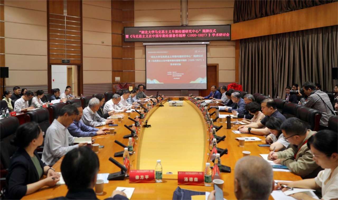 近日,“湖北大学马克思主义早期传播研究中心”揭牌仪式暨《马克思主义在中国早期传播著作精粹(1920-1927)》(以下简称《精粹》)学术研讨会,在湖北大学召开。70余名专家学者和媒体代表齐聚一堂,共同庆祝研究中心的成立,深入研讨《精粹》,推进马克思主义在中国早期传播的研究。