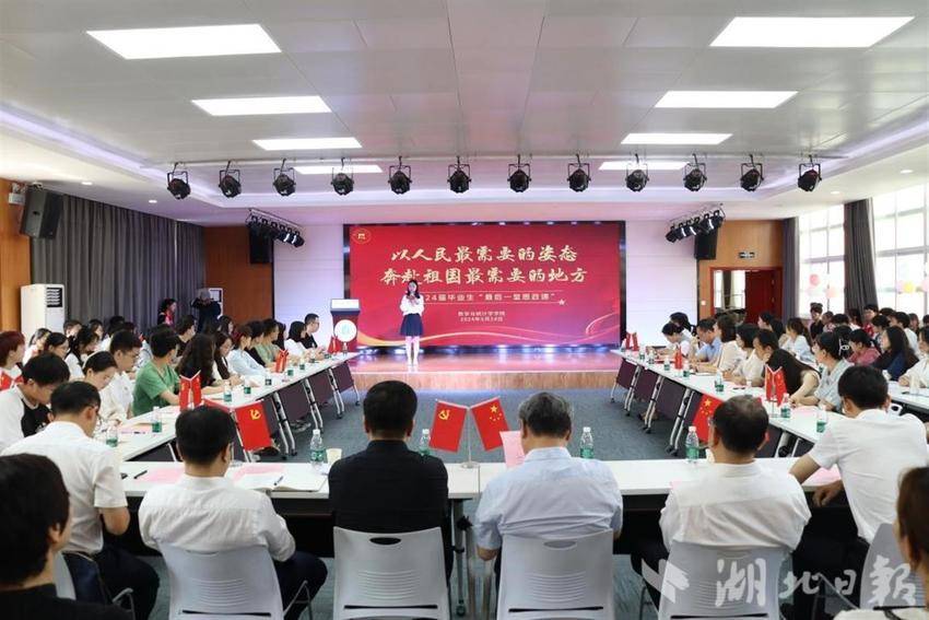 湖北日报讯(通讯员张文霞、曾宇欣)5月下旬,在湖北大学数学与统计学学院2024届毕业生“最后一堂思政课”现场,远在新疆的2021届毕业生赵炳清通过视频,为学弟学妹们讲述了西部计划志愿者的故事,也送来毕业季寄语:“以人民最需要的姿态奔赴祖国最需要的地方,是青年最有效的磨砺和最深情的担当。”