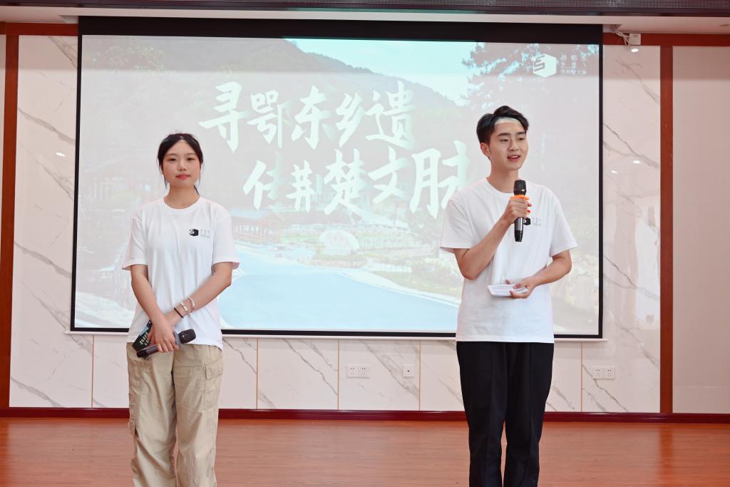 暑期社会实践团队成员金海、徐寓妍作题为《寻鄂东乡遗 传荆楚文脉——基于对麻城市乡村振兴调研分享》的微党课宣讲。他们以湖北大学艺术与设计学院连续7年组建“乡遗保护”社会实践团队为切口,从传统村落的守护者、乡村振兴的建设者、乡土文化的传播者三个角度,介绍了麻城市的非遗文化和乡土文化,展示了实践团队设计的茯苓窝特色农旅文创产品及其他成果。未来将继续通过系列微党课、非遗青年说、新媒体互动等方式,沉浸式体验并记录真实的乡村生活,以青年大学生的视角讲述乡村故事,让更多人爱上乡村、扎根乡村。
