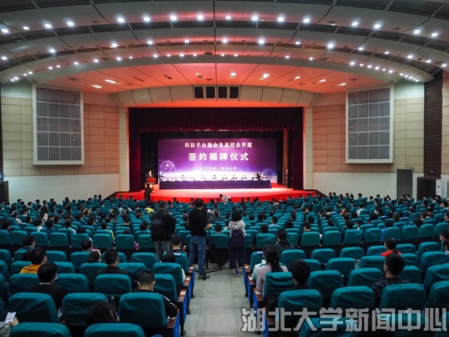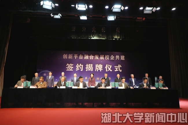 11月6日,湖北大学举行创新平台融合发展校企共建签约揭牌仪式,湖北大学微电子学院、网络空间安全学院、人工智能学院、新能源科学与技术研究院等4个新工科学院揭牌成立,全国16家行业领军企业与湖北大学新工科学院签署校企共建协议。湖北省人民政府副省长肖菊华、中国工程院院士吴汉明出席揭牌仪式并讲话,湖北省人民政府有关部门和企业代表出席仪式。湖北大学全体校领导和师生代表参加仪式。