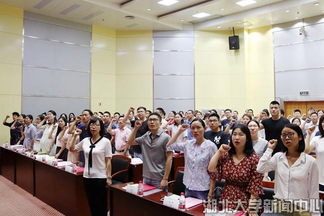 谢红星代表学校对新进教职工入职湖北大学表示欢迎,并围绕“教师职业生涯选择的三重境界”作专题报告,为他们的未来职业道路提供指引。他勉励新进教职工恪守本心、不断学习,把握人生努力的方向和目标,在工作中不断提高教学科研技能。