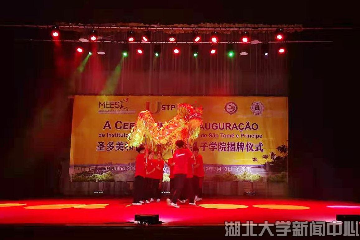 揭牌仪式上,湖北大学师生表演了舞龙舞狮和中国书法、武术、民歌及民族舞蹈,圣普大学孔子学院学生演唱了中国歌曲《大中国》和《朋友》,演出现场气氛热烈,掌声此起彼伏、经久不息。演出结束后,热苏斯和圣普政府高级官员、王卫、谢红星等上台与演职人员一一握手,给予高度评价,表示衷心感谢。