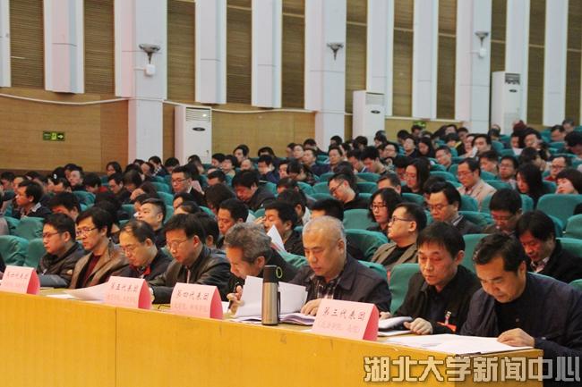 谢红星深入分析了高等教育自身发展规律和形势、湖北大学自身发展状态,指出当前和未来几年,学校要坚持保基础、保民生、保重点、促中心。同时,要正确处理好规模、结构、质量的关系,统筹好改革、发展、稳定的关系,平衡好一流学科建设与人才培养、师资队伍建设、科学研究、国际化办学的关系,协调好创建一流与办出特色的关系。