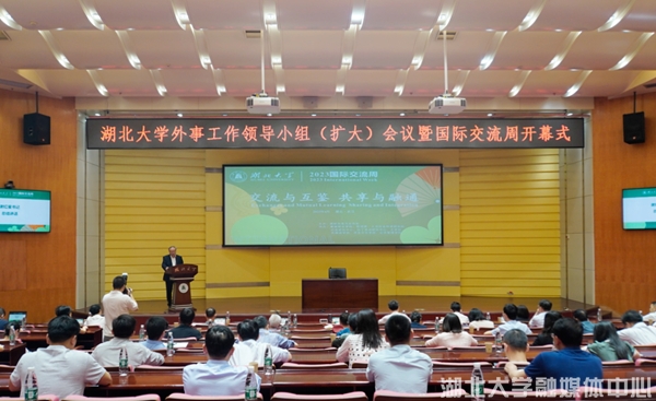 文明因交流而多彩,文明因互鉴而丰富。在第14个联合国中文日到来之际,4月19日至22日,学校举办以“交流与互鉴,共享与融通”为主题的2023年国际交流周系列活动。19日上午,国际交流周开幕式在会议中心举行,湖北大学外事工作领导小组(扩大)会议同时召开。校领导谢红星、侯勇、王世敏、蒋涛、艾青松、李莉出席会议,相关职能部门负责人、各学院代表参加会议,会议由副校长蒋涛主持。