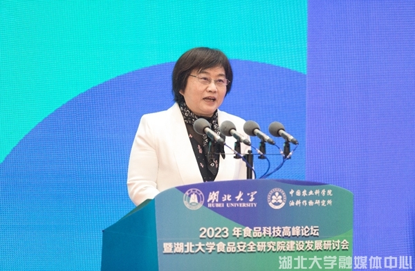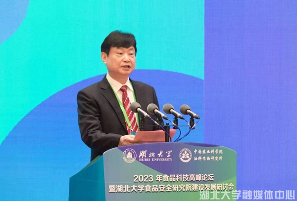 谢红星在致辞中代表湖北大学对各位院士、领导、专家学者以及与会嘉宾的到来表示热烈的欢迎,对大家长期以来关心支持湖北大学的发展表示衷心的感谢,并介绍了学校基本情况。他说,当前,湖北大学锚定“双一流”目标,正处于闯关夺隘、爬坡过坎的关键时期,此次活动的成功举办和湖北大学食品安全研究院的成立,显现了学校筑巢引凤的人才工作成效。他表示,湖北大学将进一步整合校内外资源,发挥多学科融合优势,强化有组织科研,为学校打造一流团队、培养一流人才、开创一流科研领航赋能。